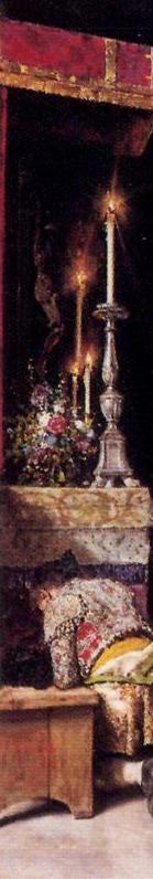 El obispo se volvi� muy reposado a la iglesia con los cuernos en las manos y, poni�ndolos en el altar mayor, maldijo a los tres siervos, que falsamente le acusaron.