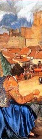 Es una c�ntiga de doce estrofas con preciosas ilustraciones, son seis vi�etas dispuestas en dos columnas . Las dos centrales , aparecen los espectadores en la gradas arrojando flechas y banderillas ;y lanzan sujetas con cuerdas lanzas